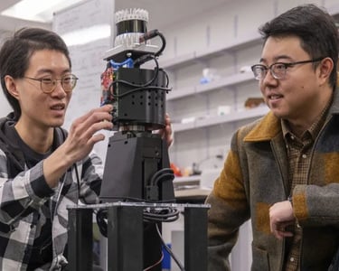 University of Pennsylvania researchers have developed a radio-based sensing system that could enable robots to “see” through smoke and rain, or around corners. A spinning array on the robot sends radio waves in all directions; the robot can sense reflections of those radio waves. An onboard AI system uses that data to create a 3D view of the robot's surroundings.